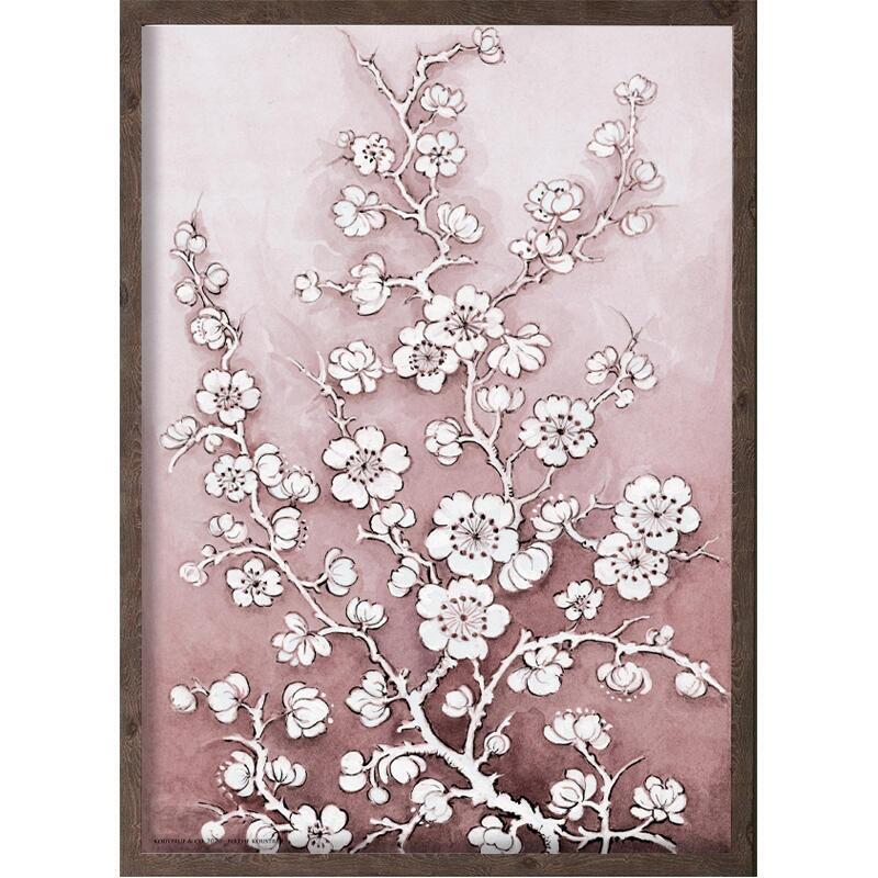 Beautiful watercolor art print of pink cherry blossoms. Painted by former porcelain painter Birthe Koustrup.