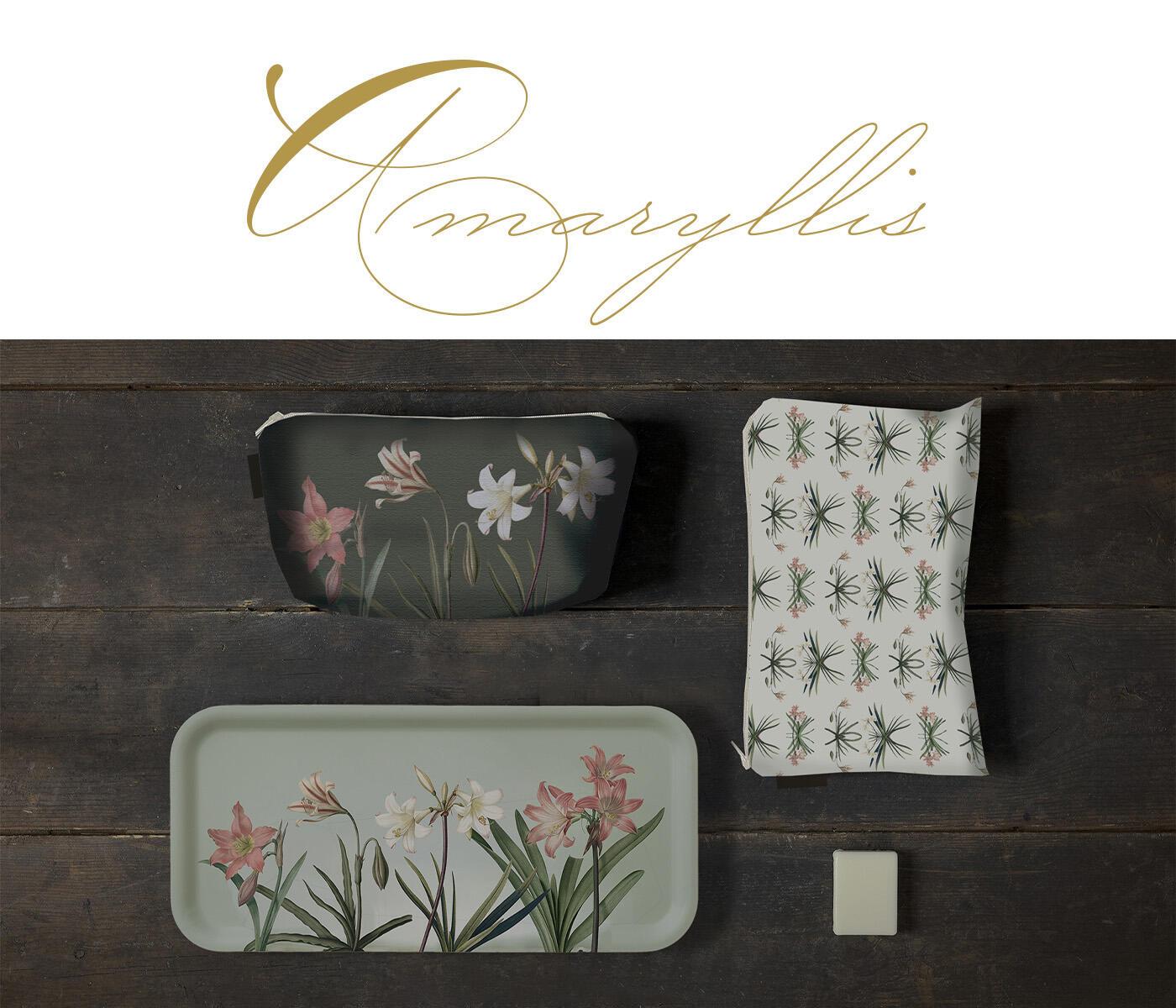 The beautiful flower of winter, Amaryllis, with its slender stem and funnel-shaped flower, plays the main role in this elegant collection.