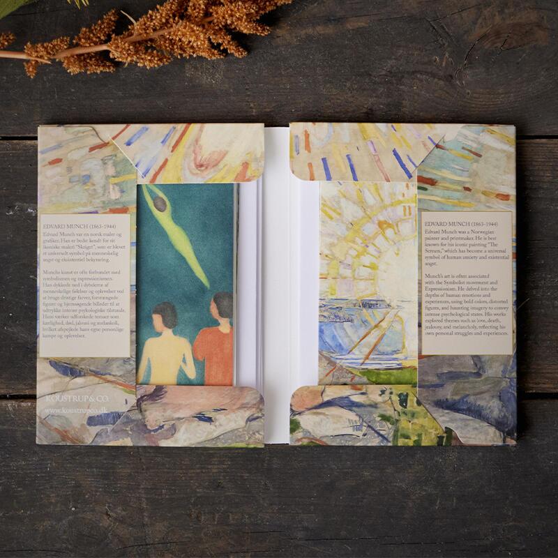 Beautiful quality cards featuring 8 different motifs by the Norwegian painter Edvard Munch - including the well-known works "The Scream" and "The Sun".