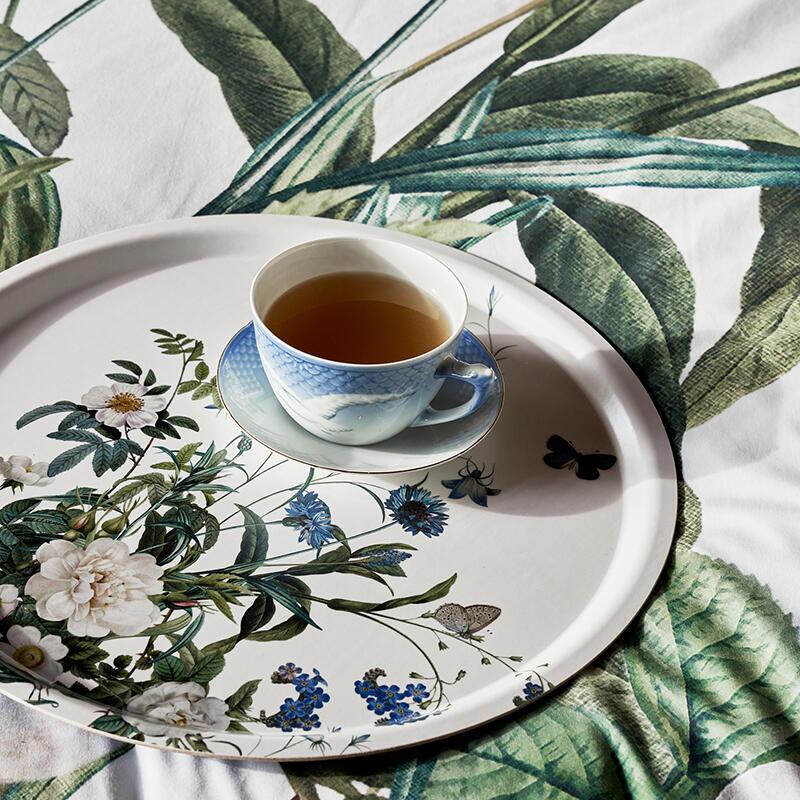 This elegant serving tray, featuring bellflowers, white roses and butterflies, is part of the exclusive "Blue Flower Garden" collection, created in collaboration with Jim Lyngvild. The tray adds a fresh, natural touch to both classic and modern homes, and is perfect for serving or as a decorative accent.