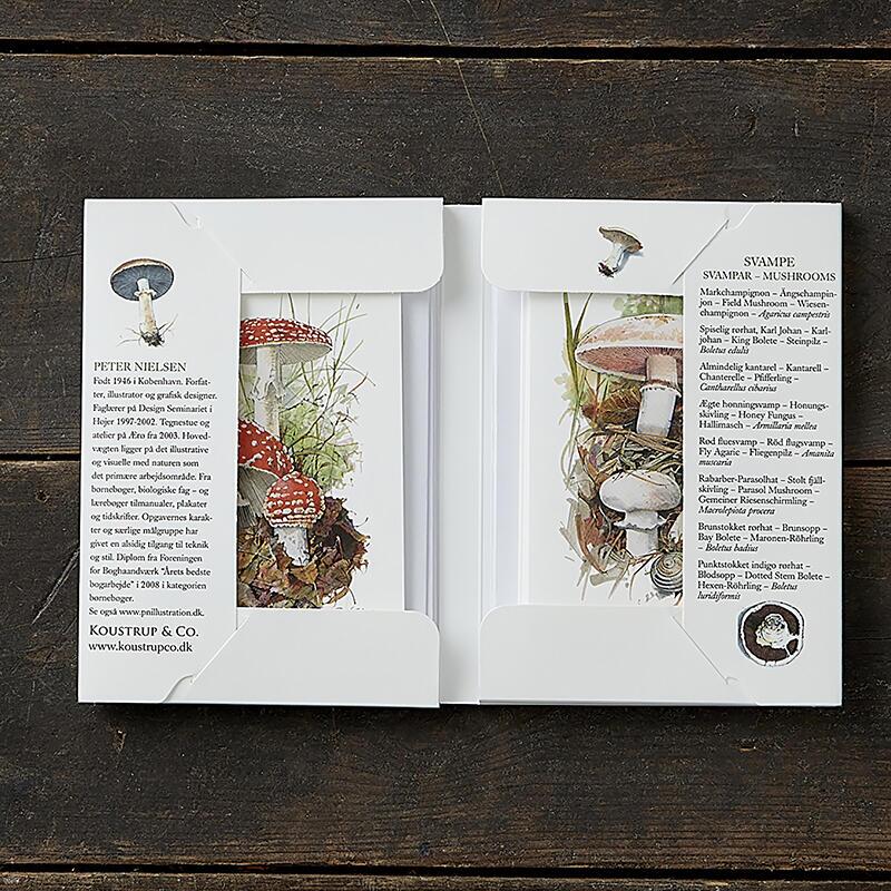 Quality cards featuring mushroom motifs illustrated by Peter Nielsen.