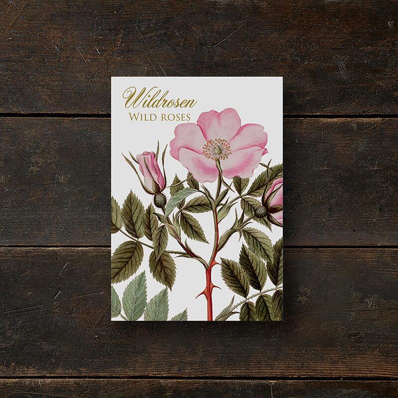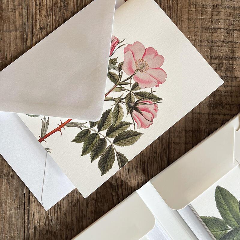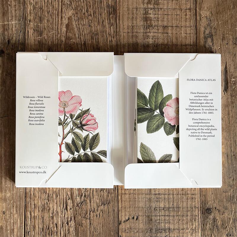 Card set featuring motifs of wild roses from the botanical work Flora Danica.
