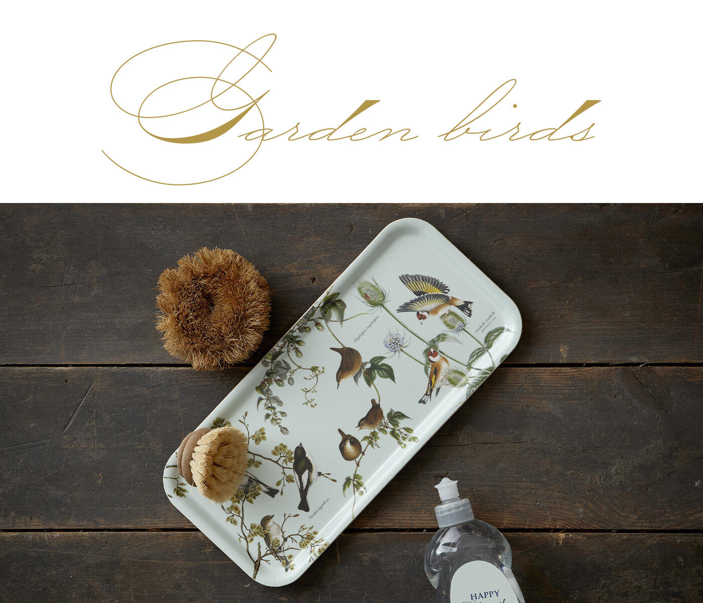 The motifs in this lovely collection are the garden's popular birds that can be seen at the bird feeder in the garden. The collection includes trays, cosmetic bags, napkins, puzzles, coasters, and many other delightful products.